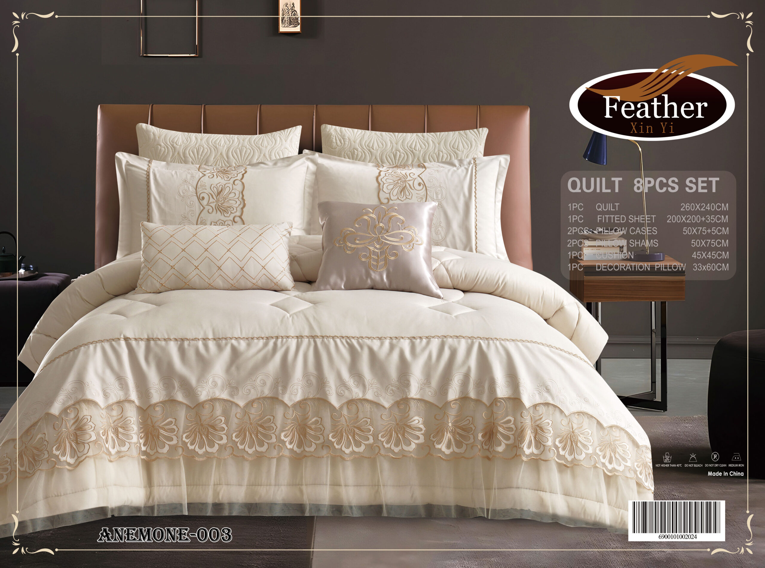 Item Description : Anemone wedding Comforter Set 8 pcs Embroidery with Lace